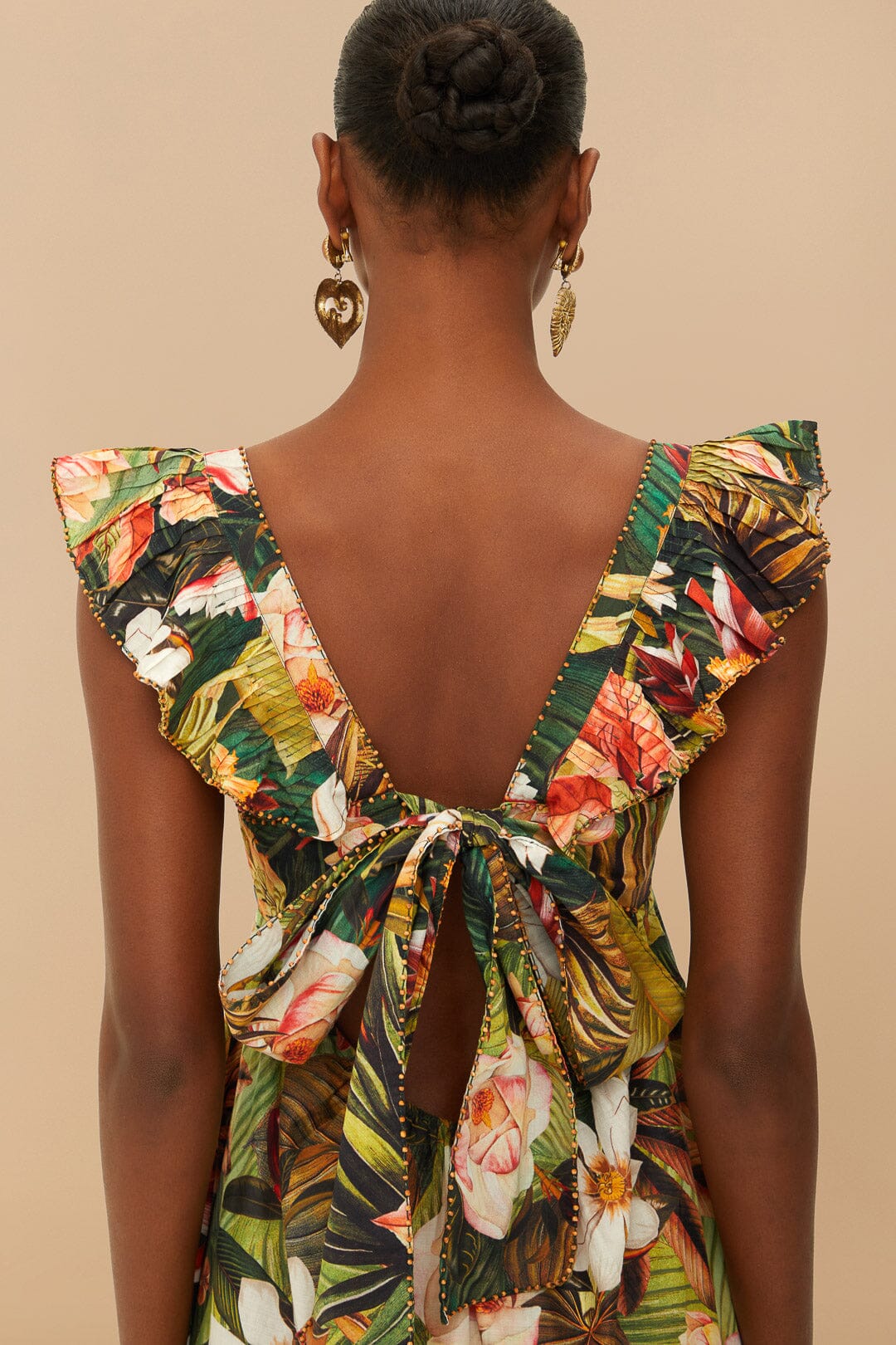 maxivestido de tirantes con cuello redondo y volantes botanical forest multicolor