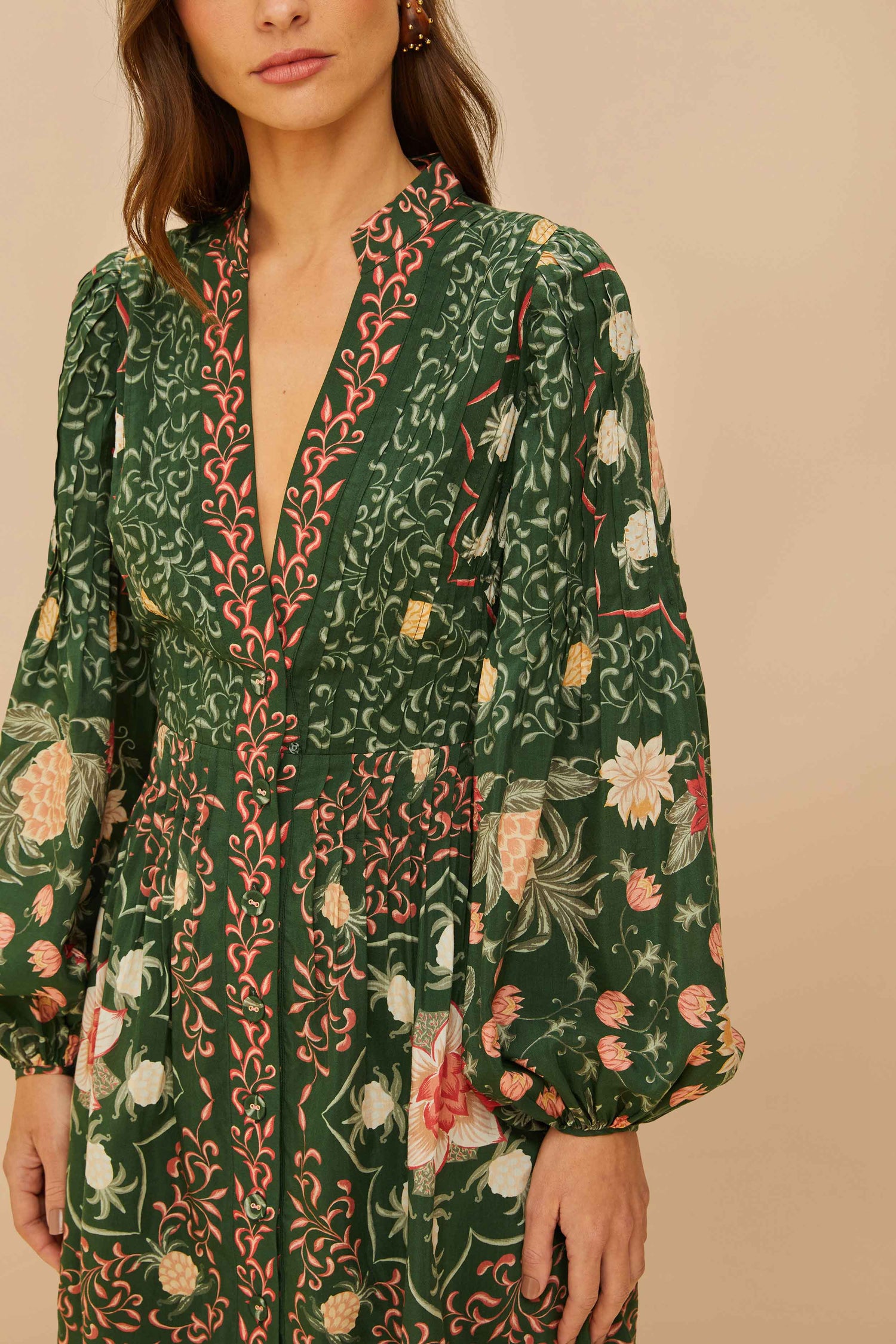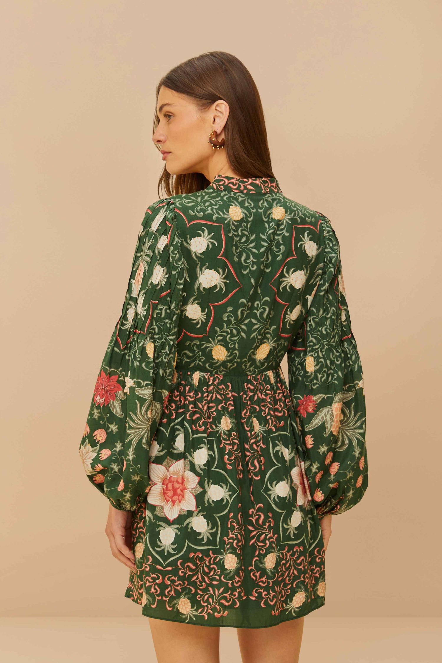 Abraza el capricho de la naturaleza con el minivestido de manga larga Green Pineapple Garden de FARM Rio. Con una exuberante paleta verde adornada con vibrantes piñas y flores, el vestido evoca una juguetona elegancia. Su favorecedor escote en V y sus mangas voluminosas realzan su encanto de espíritu libre. Celebra el arte de los intrincados estampados que aportan calidez y alegría, convirtiéndolo en una pieza irresistible para cualquier ocasión.