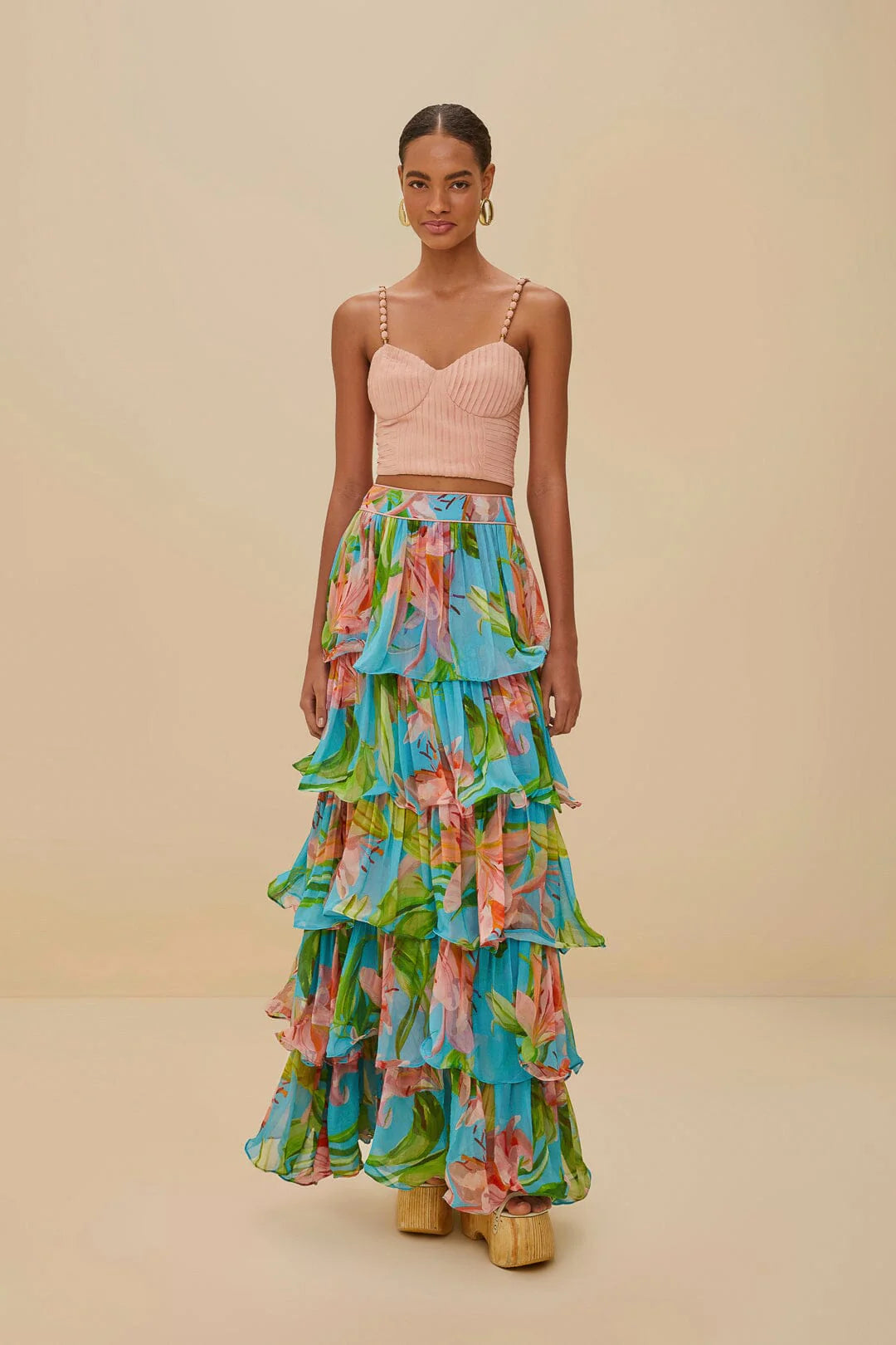 El top corsé Pink Blush de FARM Rio encanta con su suave escote corazón, que evoca un tierno encanto. Su tejido texturizado fluye con precisión en una silueta favorecedora, mientras que los delicados tirantes adornados con cuentas añaden un toque de fantasía. El suave tono rosado encarna una elegancia juguetona, convirtiéndolo en una pieza que aúna sin esfuerzo sofisticación con un toque de espíritu despreocupado. Perfecto para cualquier reunión a la luz del sol.