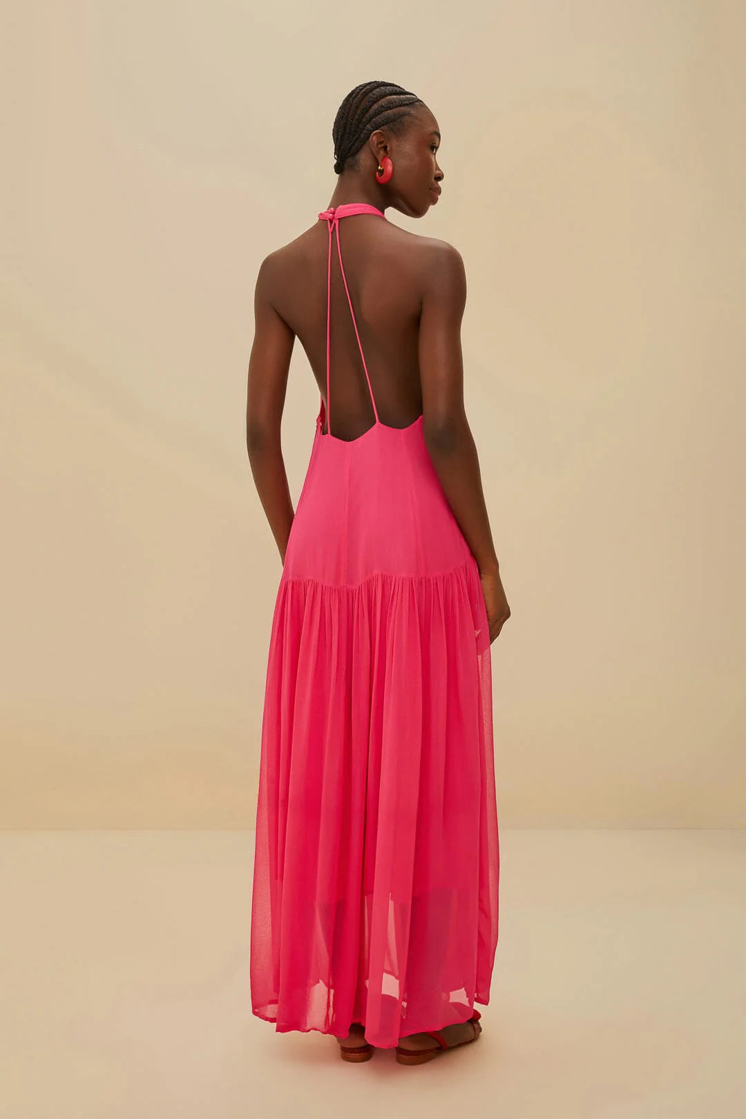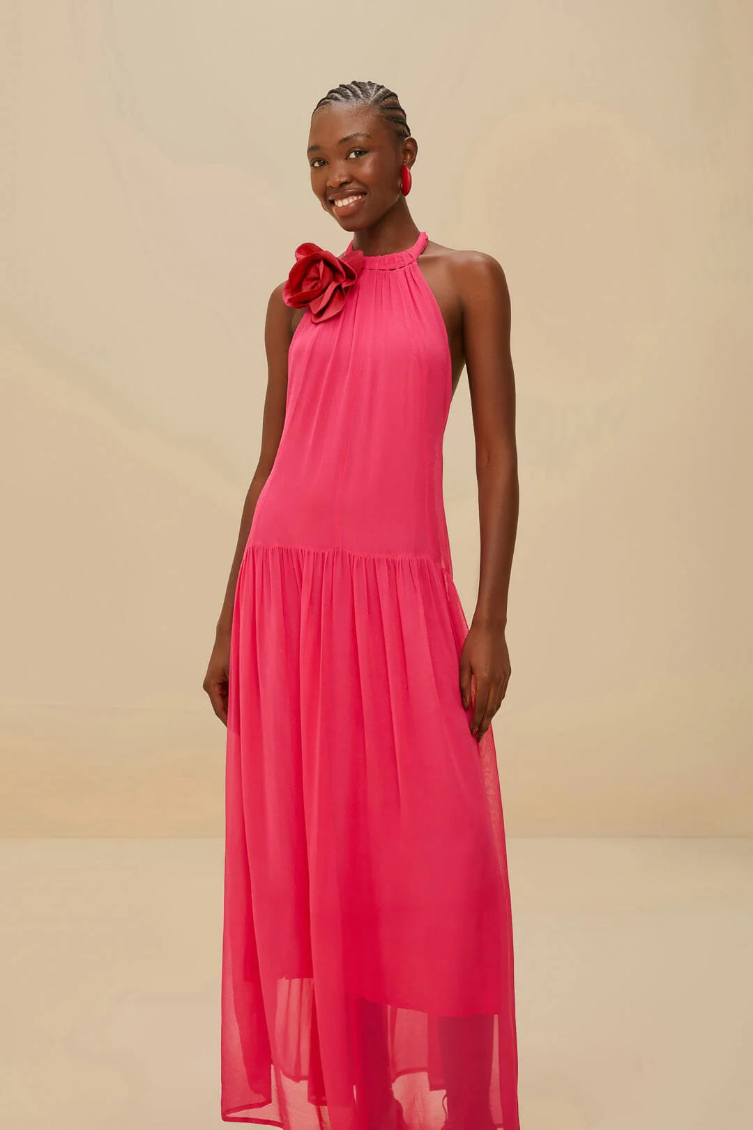 El maxivestido rosa de flores y cuello halter de FARM Rio irradia elegancia sin esfuerzo y encanto tropical. Su vibrante tonalidad florece con un encantador adorno floral en el escote, que le da un toque divertido. La silueta fluida cae en cascada con gracia, capturando la brisa y su imaginación por igual. El escote halter realza la clavícula, mientras que la espalda abierta añade un toque de encanto. Perfecto tanto para paseos al sol como para bailes a la luz de la luna, invita al estilo en cada momento.
