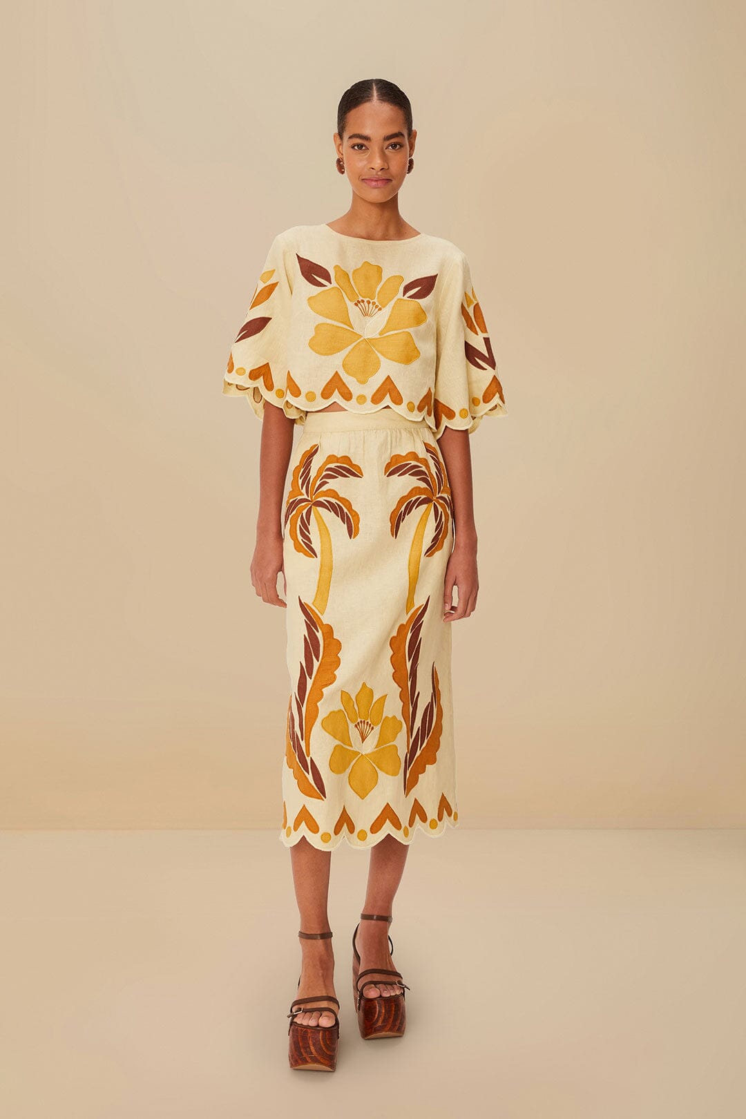 blusa de lino de primera calidad sand summer cutwork euroflax™