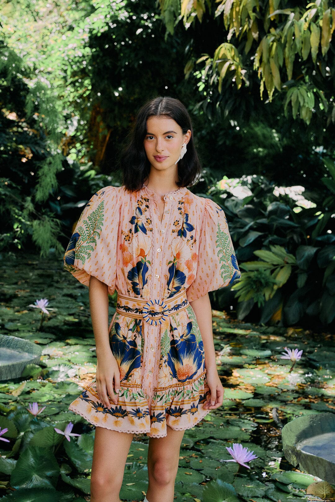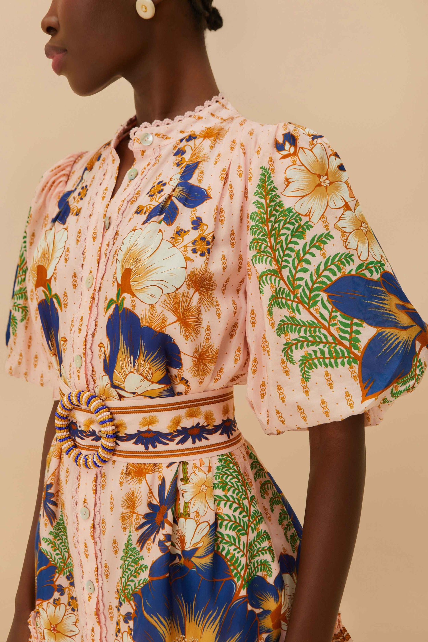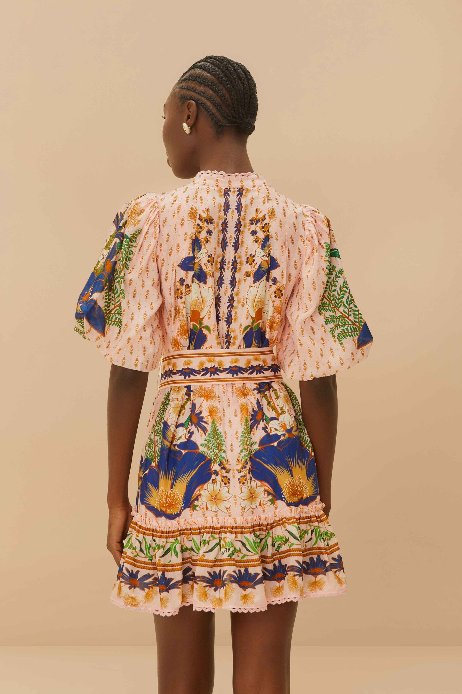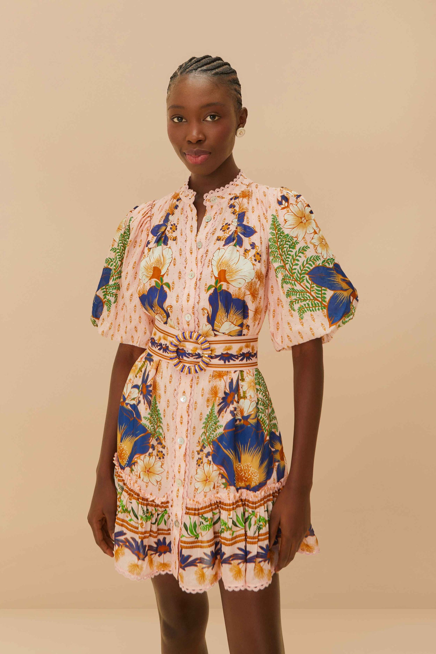 Adéntrate en un mundo de fantasía con el minivestido con cinturón de cuentas Pink Dream Garden de FARM Rio. Esta encantadora prenda presenta un alegre estallido de vibrantes motivos florales que bailan sobre un suave fondo rosa. El escote redondo fluye a la perfección en una silueta suave, mientras que el cinturón de delicadas cuentas acentúa tu cintura con un toque de encanto artesanal. Este vestido es perfecto para quienes adoran una mezcla de sofisticación y alegría.